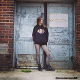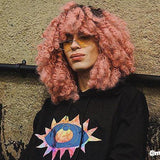 フロントの大きなレインボーアイデザインとキュートなレインボーアイエルボーパッチがポイントのブラックグラフィックパーカー。